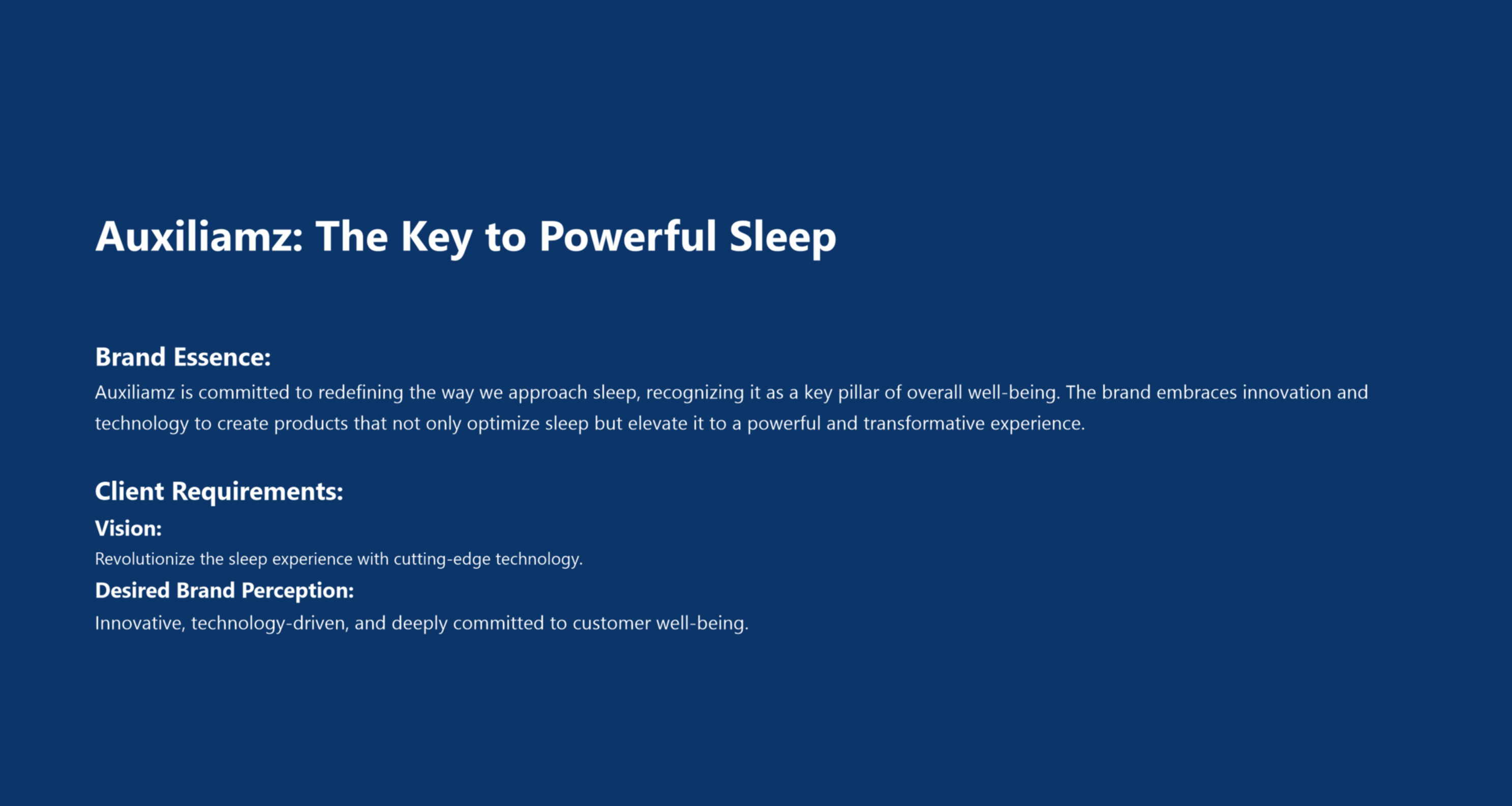 - Vision: Revolutionize the sleep experience with cutting-edge technology.