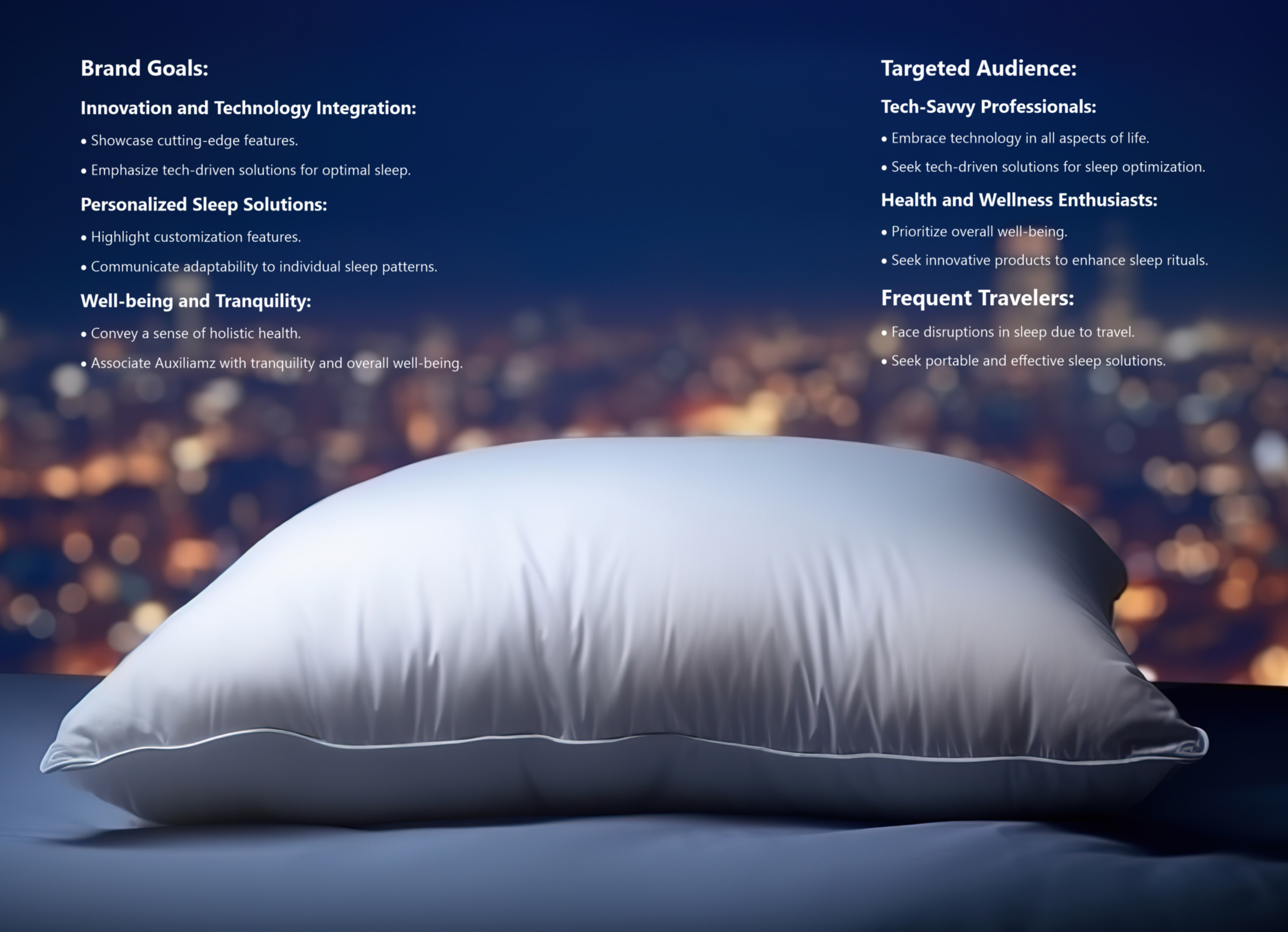 - Emphasize tech-driven solutions for optimal sleep.